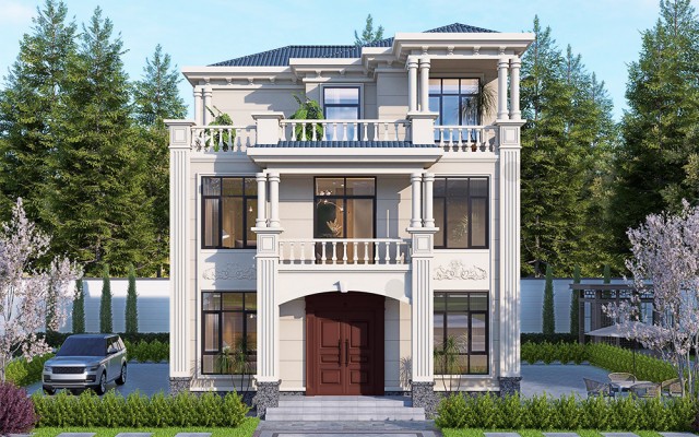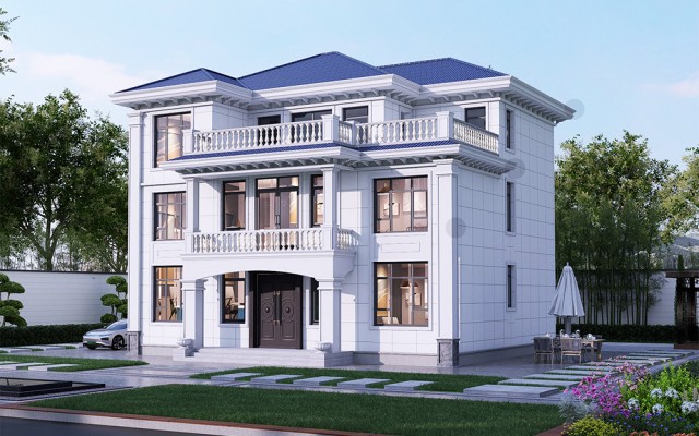 三层欧式带露台别墅 尺寸:11.7x11.92