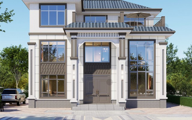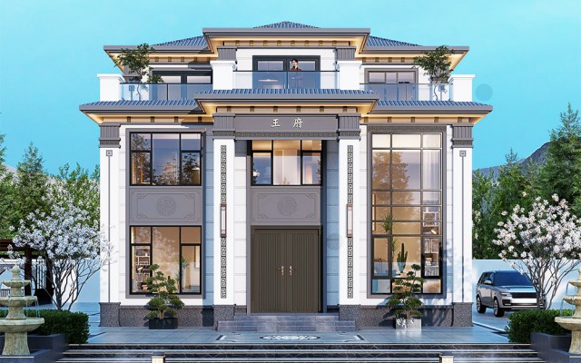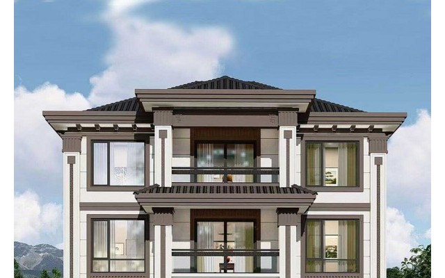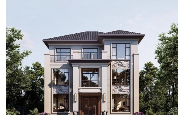 三层兄弟别墅新中式风格双排尺寸: 20mx9m