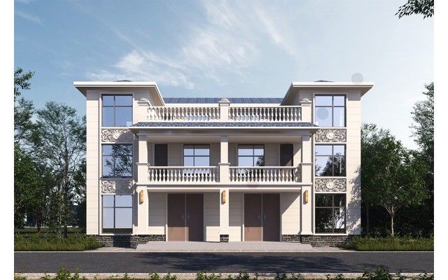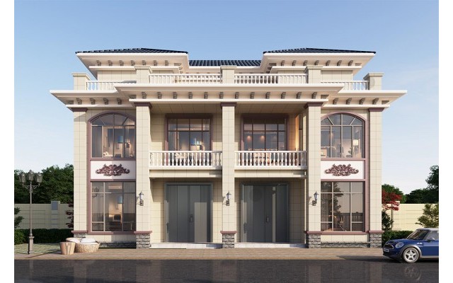 三层欧式双拼兄弟别墅双排 尺寸:14.8mx11.3m
