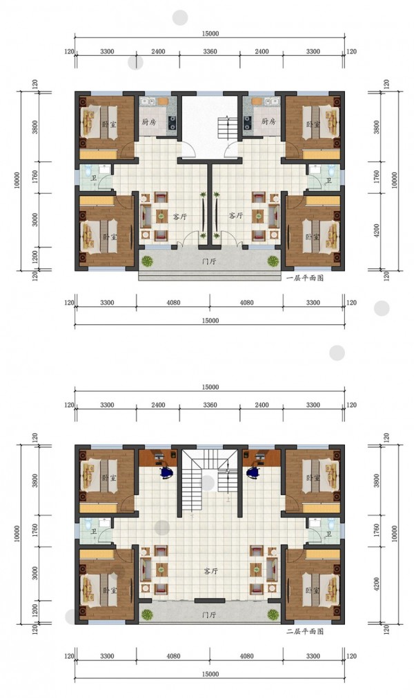 二层 新中式双排 尺寸:15x10m