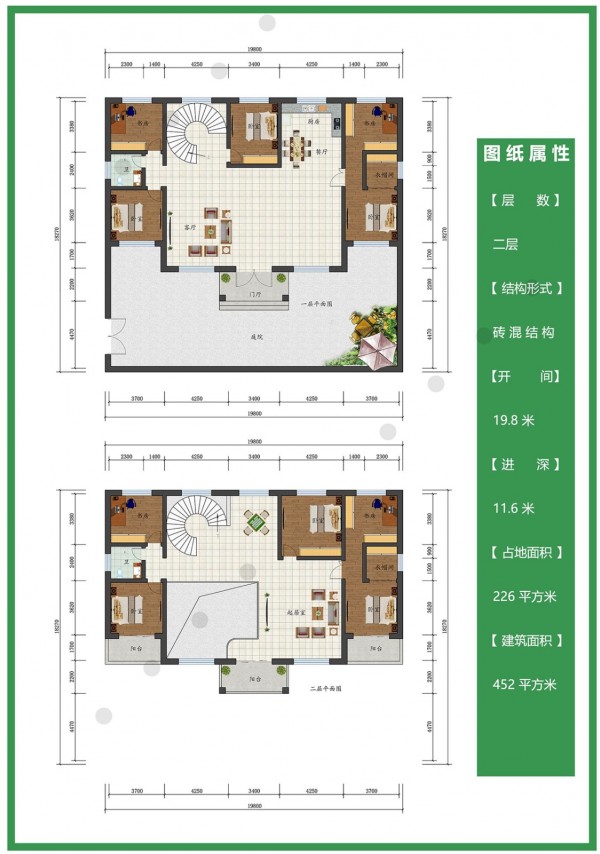 二层新中式 尺寸:19.8米X11.6米