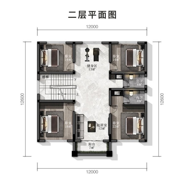二层欧式尺寸:12X12.6m