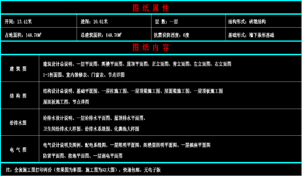 购买本套图纸仅提供打印好的图纸一份,我们不出售电子文件、光盘。我们设计的图纸非常详细,用A3规格打印图纸,比传统蓝图更清晰、容易复印、方便收藏,可以直接应用到施工现场。售后服务仅为图纸答疑,不包任何修改,因为只要其中一张图纸改变,其它图纸相应均需修改,工作量较大,所以我们不包修改。如果您个性要求较多需按要求订做设计,请查看别墅设计业务流程,并联系设计客服咨询设计收费标准。