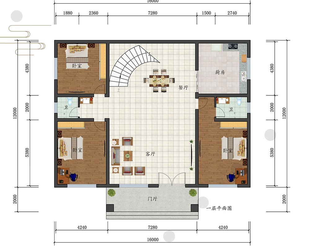 三层新中式欧式尺寸:16mx12m