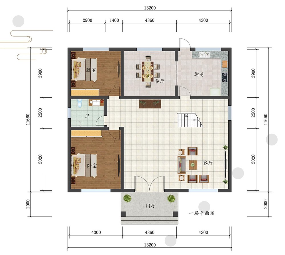 三层新中式风格尺寸:13.2mx11.6m
