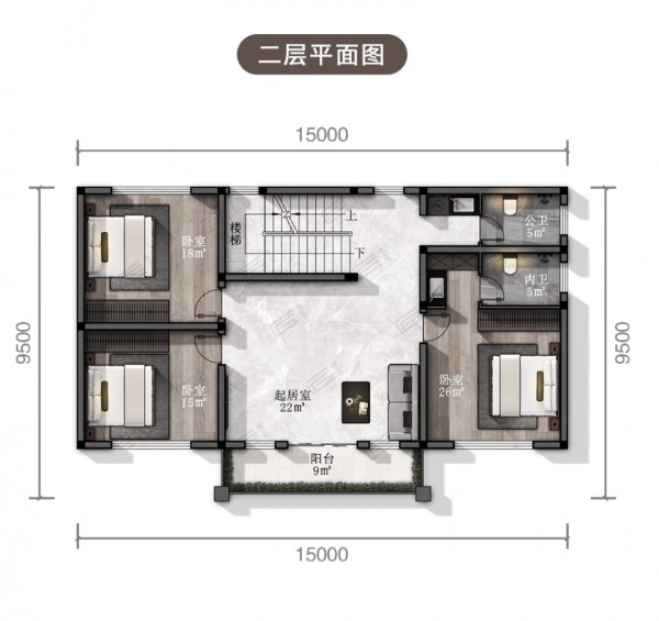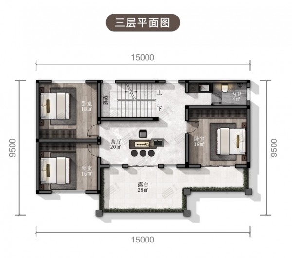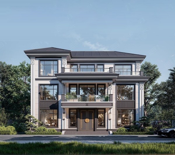 三层新中式风格别墅 尺寸:15mx8m