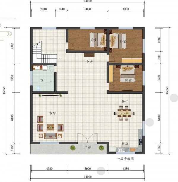 三层 现代风格别墅 尺寸:14mx15.5m