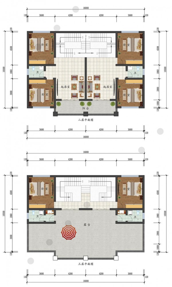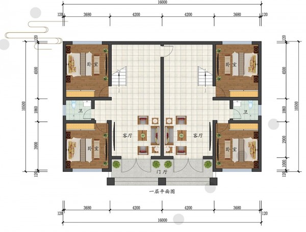 三层欧式双拼兄弟别墅 双排 尺寸:16mx10.5m