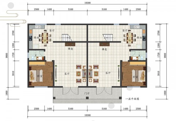 三层欧式双拼兄弟别墅双排 尺寸:18mx9.8m