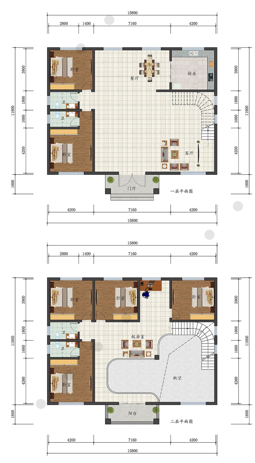 二层 欧式风格别墅 尺寸:15.8mx11.8m